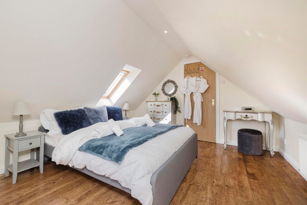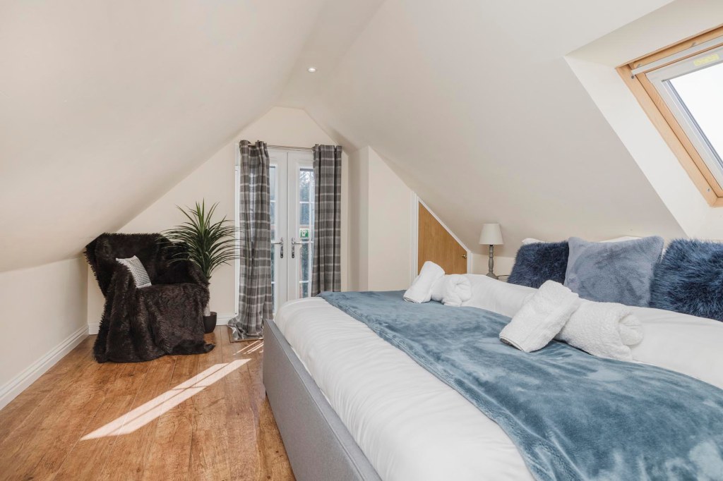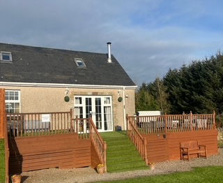 Greenknowes Cottage sleeps 4 guests. It is to the side of the main farmhouse next to the lodge. It is more like an annex as it is only accessed from the outside. The Cottage has a bright open plan living dining room and is dog friendly. The entrance is into the Living area with terrace and hot tub.